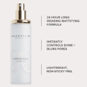 • Vesipohjainen koostumus, joka välittömästi kontrolloi ihon kiiltelyä ja tasoittaa ihohuokosia.