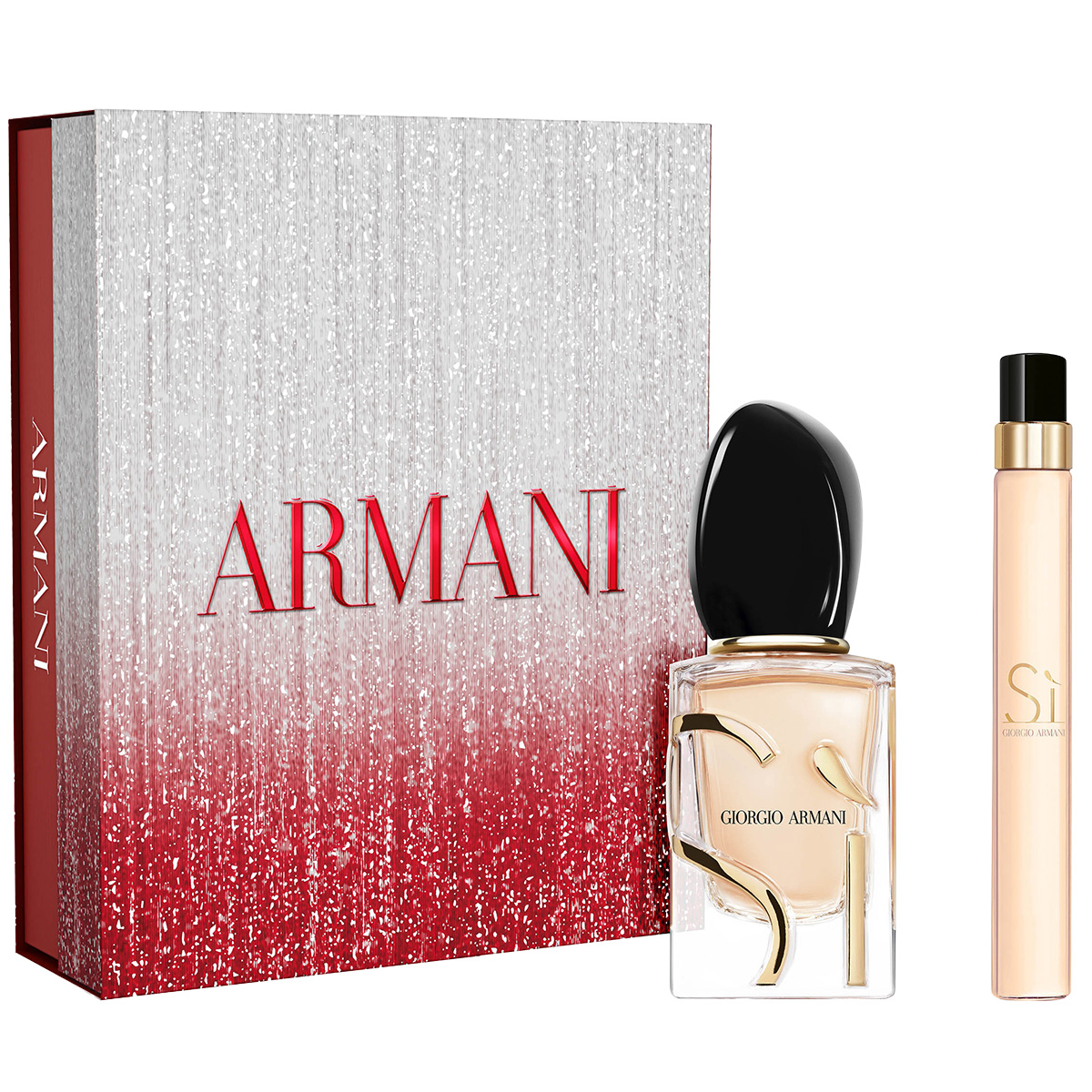 Ainutlaatuisella lasinvalmistustaidolla valmistettu jalokivipulloa koristaa kultainen Sì-logo, joka on kohokuvioitu lasiin. Se on voimakas julistus, joka kutsuu jokaisen naisen sanomaan Sì. Arvokas pullo on suunniteltu kestämään, ja se on uudelleentäytettävä ja kierrätettävä. Tämä Sì Eau de Parfum naisten lahjapakkaus sisältää 30ml tuoksun ja 10ml tuoksun.