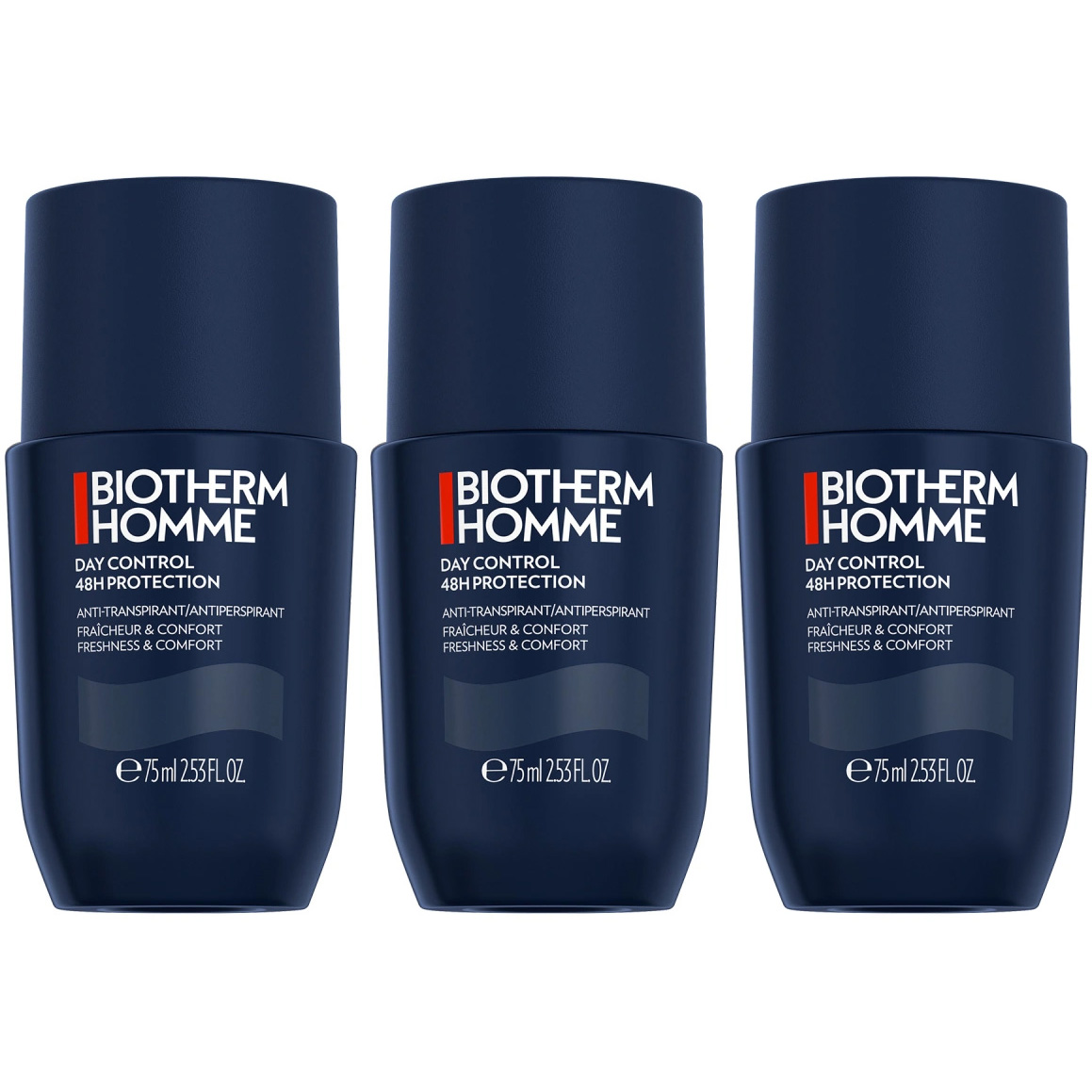 Biotherm Homme Day Control Roll-on 48H on tehokas antiperspirantti, joka pitää olon raikkaana jopa 48 tuntia estämättä hieneritystä. Ehkäisee pahoja hajuja, ei jätä jälkiä vaatteisiin ja on helppo levittää.