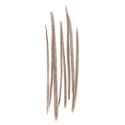 Aloita kynän litteällä sivulla muotoilemalla ja kevyesti varjostamalla kulmien alkua. Käytä kynän terävää kärkeä korostaaksesi kaarta ja häntää lyhyillä, tarkasti määritellyillä vedoilla. Viimeistele ilme harjaamalla kulmakarvat paikoilleen mukana tulevalla harjalla.