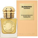 Burberry Goddess Eau de Parfum Intense -kampanja jatkaa Emma Mackeyn ja naarasleijonalauman seuraavista heidän itsensä löytämisen matkalla. Uudella voimallaan ja itsevarmuudella Emma ilmentää Burberry Goddessin henkeä. Auringon laskiessa hän ammentaa voimaa sen säteistä ja vapauttaa sisäisen voimansa. Tämä Burberryn tuoksu on gourmand-aromaattinen puumainen tuoksu. Goddess Eau de Parfumin tunnusomaista vaniljakolmikkoa on täydennetty neljännellä vaniljapuulla (vanilja-SFE), jolla on savuista luonnetta. Yhdistettynä kirkkaaseen laventeliesanssiin se tehostaa tuoksua eloisalla puumaisella tuoksulla. Auringonlaskun väreistä inspiroitunut Burberry Goddess Eau de Parfum Intense on sijoitettu neliömäiseen pulloon, joka on täytetty kevyellä meripihkan tuoksulla ja koristeltu kultaisella medaljongilla. Tumman beige pakkaus, jossa on gabardiinivaikutteinen kultainen etiketti, viittaa brändin perintöön. Burberry Goddess Eau de Parfum Intense on suunniteltu täytettäväksi. Täyttöpullo myydään erikseen.