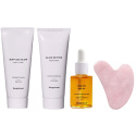 1. Aloita gua sha -rutiinisi puhdistamalla kasvot sekä kaula, dekoltee ja hartiat. Levitä sitten kasvoöljyä hieman kostealle iholle ja hiero öljy ihoon. Hiero aina ylöspäin suuntautunein liikkein!