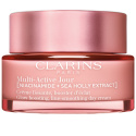 Kun iho altistuu intensiiviselle arjelle ja elämäntyylille, on sen säilytettävä energiansa ja puolustuskykynsä – Clarins Multi-Active Day All Skin Types voi auttaa siinä ainutlaatuisella ainesosayhdistelmällään: Skin Charger Complex sisältää niasiiniamidia ja piikkiputkiuutetta – tehokas kaksikko, joka auttaa häivyttämään ensimmäisiä ikääntymisen merkkejä. Tisteliuutteella on elinvoimaa antavia ominaisuuksia, jotka antavat iholle uutta energiaa. Mansikkapuu-uute auttaa kohentamaan ihon tekstuuria ja häivyttää ihohuokosia. Lisäksi koostumus sisältää Clarins Anti-Pollution Complex -yhdistelmän.