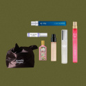 Setti tuoksujen ystävälle. Viisi erilaista hajuvettä esittelee monipuolisesti useita tyylejä ja persoonallisuuksia.Arvo: 184 €