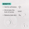 Hellävarainen kaksivaiheinen seerumi, jossa on 7 % PHA:ta ja joka on suunniteltu auttamaan ihon palautumisessa ja tasoittamisessa sekä vähentämään ihohuokosia ilman ärsytystä. Viikon kuluttua se poistaa kuolleet ihosolut, vähentää mustapäitä ja hillitsee ylimääräistä öljyä. Koostettu PHA:lla, joka on herkälle iholle sopiva kemiallinen kuorinta-aine, jonka suuri molekyylikoko ei tunkeudu niin syvälle ihoon, mikä vähentää ärsytysriskiä. Pantenoli auttaa säilyttämään kosteutta ja makadamian siemenöljy auttaa hillitsemään talia tukkimatta huokosia. Dermatologisesti testattu. Sopii herkälle iholle.
