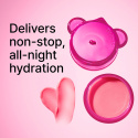 Tämä huulille jätettävä koostumus sisältää hyaluronihappoa, joka kosteuttaa tehokkaasti koko yön, silottaa kuivia juonteita ja saa huulet näyttämään täyteläisemmiltä samalla kun se lisää kiiltoa. Geelimäisessä koostumuksessa on mieto hedelmäinen tuoksu, ja se luo huulille kevyen vaaleanpunaisen hohteen. Naamio antaa huulille välittömästi täyteläisen ilmeen ja häivyttää kuivia juonteita, tehden huulista sileät ja hyvinvoivan näköiset. Käytä huulinaamiona öisin tai kosteuttavana huulivoiteena päivisin antamaan huulille kevyen värisävyn ja raikkaan ilmeen.