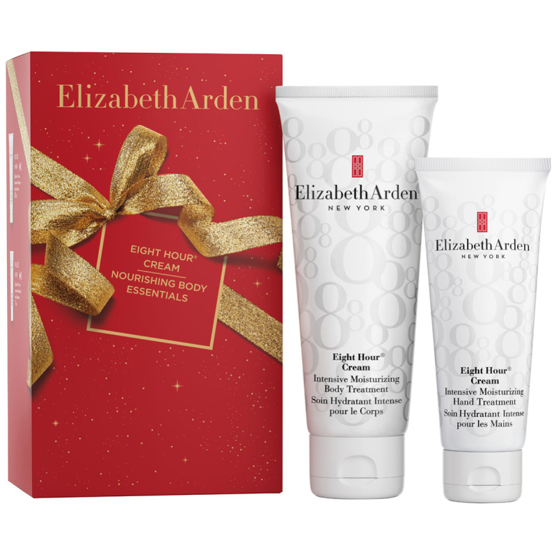 Ylellinen joululahja Elizabeth Ardenilta. Tämä lahjapakkaus sisältää kaksi ikonista Eight Hour -sarjan tuotetta: Hand Treatment -käsivoiteen ja Moisturizing Body Treatment -vartalovoiteen. Eight Hour Moisturizing Body Treatment kosteuttaa ihoa intensiivisesti ja tekee siitä pehmeän – myös haastavilla alueilla, kuten kyynärpäissä ja polvissa. Täyteläinen koostumus imeytyy nopeasti ja rauhoittaa ihoa tehokkaasti. Eight Hour Intensive Moisturizing Hand Treatment tarjoaa jopa kahdeksan tunnin kosteutuksen ja suojan käsille. Nopeasti imeytyvä koostumus pehmentää ja silottaa karheankin ihon.