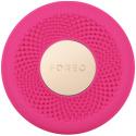 UFO™ 3 LED – Syvähoitava hoito LED-valolla, NIR-tekniikalla ja T-Sonic™-pulsaatioilla! UFO™ 3 LED tarjoaa sinulle syvähoitavan kasvohoidon vain 2 minuutissa yhdessä kasvonaamiosi kanssa! Saatavilla olevien 22 erikoishoidon avulla sovelluksen kautta UFO™ 3 LED tarjoaa räätälöidyn ihonhoitokokemuksen jokaiselle hoidolle, suunniteltu maksimoimaan UFO™-naamioiden vaikutus. LED-valot, joilla on ainutlaatuiset ominaisuudet ja painopiste erilaisissa ihotiloissa, yhdistettynä lämpöteknologiaan ja T-Sonic-pulsaatioihin, tehostavat naamion imeytymistä samalla kun kasvojen lihakset rentoutuvat. Tutustu ihonhoidon monipuolisuuteen UFO™ 3 LED:n avulla ja koe ylivoimainen ja räätälöity ihonhoitokokemus. UFO™ 3 LED hyödyntää täyttä LED-spektriä ja NIR-tekniikkaa keskittymään väsyneen, kuivan ja elottoman ihon näkyvimpiin ongelmiin. NIR ja punainen LED toimitetaan iholle koko keskialustan kautta keskittyneen LED-hoidon aikaansaamiseksi. NIR-tekniikka lisää kollageenin tuotantoa, taistelee juonteita ja elottomuutta vastaan, samalla kun T-Sonic™-pulsaatiot parantavat verenkiertoa terveellisen hehkun saavuttamiseksi. LED-valot ja niiden edut: - NEAR INFRARED LED -valo (850 nm): Tunkeutuu syvemmälle kuin punainen LED-valo parantaakseen hienoja juonteita, auringon aiheuttamia laikkuja, ryppyjä ja ihon löystymistä. - SININEN LED-valo (420 nm): Tehokas aknen ja epäpuhtauksien hoitoon. Säätää talin tuotantoa, estää tulehdusta ja vähentää punoitusta. - SYAANI LED-valo (463 nm): Rentouttava vaikutus sekä iholle että mielelle. Edistää ihon tasapainoa ja stimuloi paranemisprosessia vähentämällä tulehdusta ja ärsytystä. - VALKOINEN LED-valo (420 - 680 nm): Lisää verenkiertoa ja edistää ravinteiden imeytymistä ihoon. Voi myös estää tulehdusta, stimuloida paranemista ja vähentää näkyviä arpia. - PUNAINEN LED-valo (650 nm): Käytetään ihon vanhenemisen torjumiseen lisäämällä kollageenin tuotantoa ja parantamalla ihon elastisuutta, mikä antaa nuorekkaamman ulkonäön. - ORANSSI LED-valo (590 nm): Stimuloi kollageenin tuotantoa elvyttäen ihoa. Vähentää epätasaisuuksia, parantaa ihon hehkua ja tasoittaa ihonsävyä. - KELTAINEN LED-valo (570 nm): Vähentää ihon punoitusta ja rauhoittaa stressaantunutta ihoa, erityisen hyödyllinen herkälle iholle. Edistää myös verenkiertoa tuoden iholle terveemmän hehkun. - VIHREÄ LED-valo (519 nm): Piristää harmaata ihoa ja vähentää pigmentaatioita saaden aikaan tasaisemman ihonvärin ja enemmän hehkua. - VIOLETTI LED-valo (450 nm): Edullinen yhdistelmä sinistä ja punaista LED-valoa aknen ja ikääntymisen merkkien, kuten hienojen juonteiden ja pigmenttiläiskien, hoitoon. UFO™ 3 LED parantaa ihosi laatua ja antaa sinulle säteilevän hehkun nopean lämmityksen, T-Sonic™-pulsaatioiden ja täyden LED-valospektrumin avulla. Jokaisella LED-valolla on ainutlaatuiset ominaisuudet ja ne keskittyvät erilaisiin ihotiloihin, ja yhdessä lämpöteknologian ja T-sonic pulsaatioiden kanssa ne tehostavat kasvonaamiosi imeytymistä samalla kun kasvojen lihakset rentoutuvat. Käyttö: Lataa FOREO For You -sovellus ja noudata ohjeita laitteesi avaamiseksi ja rekisteröimiseksi. 1. Poista rengas UFO™:stasi, valitse UFO-naamio ja kiinnitä se asettamalla se levyyn ja napsauta sitten rengas takaisin päälle FOREO-logon ylöspäin. Vaihtoehtoisesti voit asettaa kangasnaamion kasvoillesi. 2. Käynnistä UFO™ painamalla painiketta. Valitse hoito, joka on erityisesti kehitetty valitsemallesi UFO™-naamiolle, tai räätälöi oma hoitosi sovelluksessa kohdassa ""Hoidot"". Vaihtoehtoisesti voit valita yhden niistä hoidoista, jotka olet tallentanut UFO™:si kautta sovelluksessa painamalla painiketta jopa 8 kertaa. 3. Hiero naamio puhtaalle iholle pyörein liikkein kasvojen yli, kunnes hoito on päättynyt. Taputtele varovasti ylimääräinen seerumi sormillasi tai aloita uusi hoito Tuotesarja: FOREO UFO™