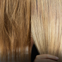Vaihe 2: Aktivoi lämmöllä: kuivaa hiukset, ja suorassa lämmössä koostumus muuttuu – avainainesosat muuttuvat juoksevammiksi ja levittyvät vaivattomasti jokaiseen suortuvaan, tunkeutuen hiussuomujen sisään ja lukiten tärkeät hoitavat ominaisuudet