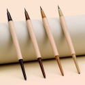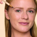 Harjaa kulmakarvoja ylöspäin ja täytä tyhjät kolot voidemaisella kynällä tekemällä lyhyitä vetoja ylöspäin karvojen suuntaisesti. Kynän tällä päällä saat täytettyä kulmat ja annettua niille muodon. Käytä sitten kynän toista päätä ja piirrä ohuen ohuita viivoja luodaksesi illuusion oikeista karvoista. Ohuella nestemäisellä huopakynällä saat tehostettua tulosta ja piirrettyä ohuita karvamaisia viivoja.