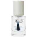 IDUN Minerals Fast Dry Top Coat Brilliant pidentää kynsilakan kestoa ja korostaa värin intensiteettiä antaen kiiltävän viimeistelyn. Nopeasti kuivuva päällyslakka, joka sisältää kosteuttavaa manteliöljyä ja kynsiä vahvistavaa keratiinia. Vegaanisessa IDUN Minerals Nail Polish -kynsilakassa on 5-free-koostumus, joten se ei sisällä vaarallisia yleensä kynsilakoissa olevia ainesosia.