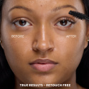 - Runsasvolyyminen lopputulos kerrostettavalla koostumuksella ja suurella karkealla harjalla, joka levittää väriä jokaiseen ripseen