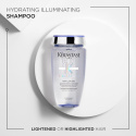 Hyaluronihappoa sisältävän Kérastase-shampoon kevyt koostumus on ihanteellinen vaalennetuille tai harmaille hiuksille. Hellävaraisesti puhdistava shampoo hellii ja kosteuttaa hiuksia tyvestä latvaan jättäen ne keveän tuntuisiksi ja kirkastaen vaaleita sävyjä. Se puhdistaa hiuksia saasteista ja poistaa samentavia aineita. Hyaluronihappoa ja alppitähteä sisältävä tehokas koostumus sisältää suuria pitoisuuksia antioksidantteja, jotka auttavat suojaamaan hiuksia vaurioilta. Hyaluronihappo syväkosteuttaa vaaleita hiuksia silottaen hiussäikeitä ja tehden hiuksista tasaisen tuntuiset. Hiukset ovat valmiit käsittelyille, luonnollisen kiiltävät ja ravitut latvoihin saakka