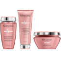 3. Cream - Kérastase Chroma Absolu Bain Riche Chroma Respect limpide (250ml)Kérastase Bain Riche Chroma Respect on ravitseva ja suojaava shampookylpy herkistyneille tai vaurioituneille värikäsitellyille, keskipaksuille tai paksuille hiuksille. Se puhdistaa hiukset kunnioittaen niitä ja auttaa säilyttämään värin**. Sen kosteuttava ja täyteläinen tuotekoostumus silottaa hiuksia, ja niistä tulee pehmeät ja kiiltävät. Vaalean ruusunsävyinen geelimäinen koostumus puhdistaa ja ravitsee hiuksia samalla kun se palauttaa kuitua ja suojaa väriä lähtemästä tai haalistumasta. Muuttaa kuidun pintaa tehden siitä pehmeän ja vähentäen pörröisyyttä.