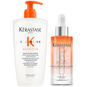 Erittäin ravintorikas shampoo välttämättömillä ravinteilla [KASVIPOHJAISET PROTEIINIT + NIASIINIAMIDI]. Ravitseva koostumus, joka puhdistaa kuivia hiuksia palauttaen kosteutta ja mukavuutta voidemaisen vaahtoutuvalla tavalla: - Elvyttää ja vahvistaa hiuksia taistelemaan kuivuutta vastaan - Palauttaa kiiltoa parantaen samalla kosteuden säilytyskykyä ja pehmentäen hiuksia - Auttaa antamaan hiuksille enemmän rakennetta ja vahvuutta - Sisältää kuivuutta ehkäiseviä polymeerejä, jotka tarjoavat tehokasta ravitsemusta ja vahvuutta +56% VÄLITÖNTÄ RAVITSEMUSTA* +58% pehmeämmät hiukset* +85% Kiiltävämmät hiukset* +77% Vahvemmat hiukset* 72 TUNNIN RAVITSEMUS** Kierrätettävä pullo valmistettu käyttäen 95% kierrätettyä muovia.*** *Instrumentaalinen testi, välittömästi tuotteen levityksen jälkeen. **Instrumentaalinen testi tuotteen käytön jälkeen ***250 ml jälleenmyyntituote lukuunottamatta korkkia 2. Serum - Kérastase Nutritive Scalp Serum (90 ml)Kosteuttava seerumi hiuspohjalle [VITAMIINIEN YHDISTELMÄ + NIASIINIAMIDI] Tehokas koostumus, joka säätelee ja suojaa hiuspohjan ihon kosteustasapainoa täydellisen mukavuuden palauttamiseksi: - Välitön tehoannos kosteutta hiuspohjalle - Tarjoaa ravitsemusta hiuspohjan tasolla ja luo pohjan ravituille, kiiltäville ja terveen näköisille hiuksille - Sisältää välttämättömiä vitamiineja - Suojelee hiuspohjan omaa suojakerrosta - Auttaa kosteuttamaan kuivaa hiuspohjaa ja kuivia hiuksia - Ei-rasvainen, nestemäinen ja nopeasti imeytyvä koostumus. +23%* hiuspohjan kosteutta heti käytön jälkeen. Dermatologisesti testattu. * Instrumentaalinen test