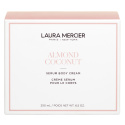 Lauran tuoksu-inspiraatio yhdistää kaksi hänen suosikkituoksuaan luoden ainutlaatuisen tulkinnan. Mantelin ja kookoksen aromin inspiroimana Laura Mercier loi tämän viettelevän, lämpimän ja miellyttävän aromisekoituksen. Löydä kookoksen, mantelin ja vaniljan meheviä vivahteita yhdistettynä heliotroopin ja myskiin runsaan, aistillisen ja houkuttelevan kokemuksen saamiseksi. Laura Mercierin Serum Body Cream -voide ravitsee ihoa tehokkaasti. Sheavoi ja skvalaani antavat iholle silkkisen tunteen, joka kosteuttaa välittömästi jopa 48 tunnin ajan. Lisätty ranskalainen oliiviöljy, ranskalainen luumunsiemenöljy ja glyseriini yhdessä auttavat palauttamaan ihon kimmoisuuden. Tapiokatärkkelys luo ihohuokosia häivyttävän ja tasoittavan efektin jättäen jälkeensä täydellisen näköisen ihon ja tyylikkään kiillon. Kosteuta ja korjaa ihoasi tällä manteli-kookoksen tuoksuisella kosteuttavalla seerumia sisältävällä vaahtoavalla vartalovoiteella.