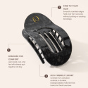 Lenoites Flat Hair Clip on elegantti hiusklipsi, joka on valmistettu ympäristöystävällisestä selluloosa-asetaatista, ylellisestä ja kestävästä materiaalista, joka tuntuu kevyeltä, vahvalta ja laadukkaalta. Ergonominen muotoilu seuraa pään muotoa ja tarjoaa varman otteen koko päiväksi vahingoittamatta hiuksia.