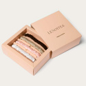 Tyylikkäät ja ajattomat hiusdonitsit on valmistettu 100% mulperisilkistä, jonka paino on 22 mommea. Luku ilmaisee silkin laadun ja paksuuden. Donitsit näyttävät kuin koruilta pitäessään hiukset paikallaan. Ne eivät myöskään hierrä hiusten ulointa kerrosta, jolloin hiukset pysyvät terveinä.