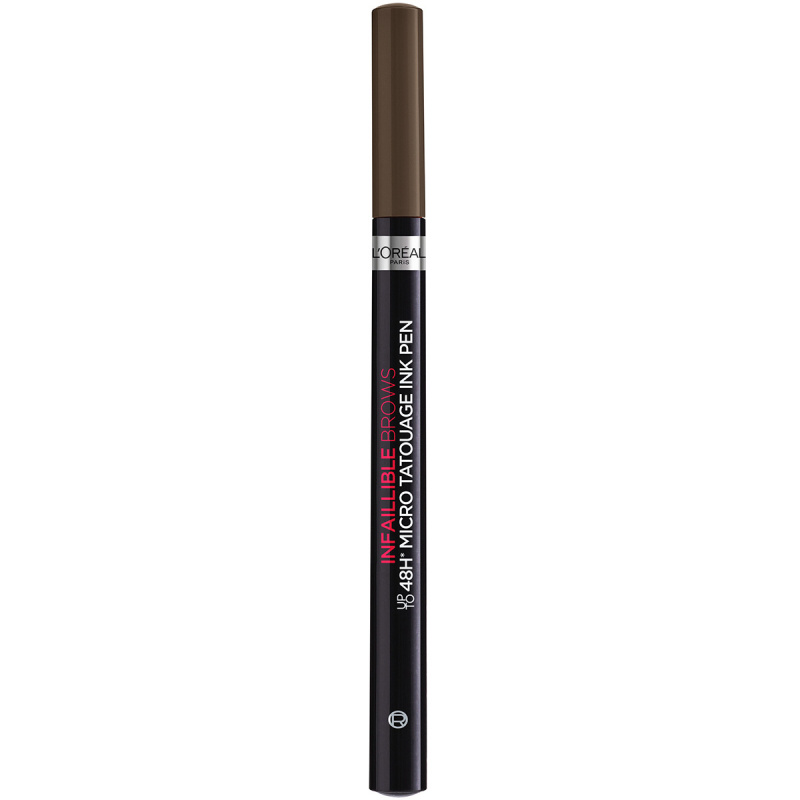 - L'Oréal Paris Infaillible Brows 48H Micro Tatouage Ink Pen -kulmakynä auttaa täyttämään kulmia, antaa väriä ja kestää jopa 48 tuntia*. Vedenkestävä koostumus, ei varise tai leviä. Kolmihaarainen sivellin tekee hiuksenhienojen vetojen piirtämisestä helppoa. Huolitellut ja tarkkaan muotoillut kulmat ja väri, joka kestää koko päivän.