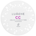 CC Color Correcting Puuterin ilmavan kevyt, pehmeä koostumus vähentää punaisuutta ja tasoittaa ihon sävyä luoden sileän, tasaisen lopputuloksen. Äärimmäisen pehmeä koostumus sisältää kosteuttavaa kapseloitua hyaluronihappoa ja pohjoista puolukkaa, joka auttaa tasoittamaan ihon sävyä. Se kiinnittää meikin ja luo iholle mattapintaisen lopputuloksen. Puuterirasia on täysin kierrätettävä tai uudelleenkäytettävä ja se on osittain tehty kierrätetyistä materiaaleista.