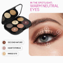 Paletti, jossa on kuusi nude-sävyistä luomiväriä. Kevyt, silkkinen tekstuuri antaa tasaisen lopputuloksen saumattomalla sekoittuvuudella.