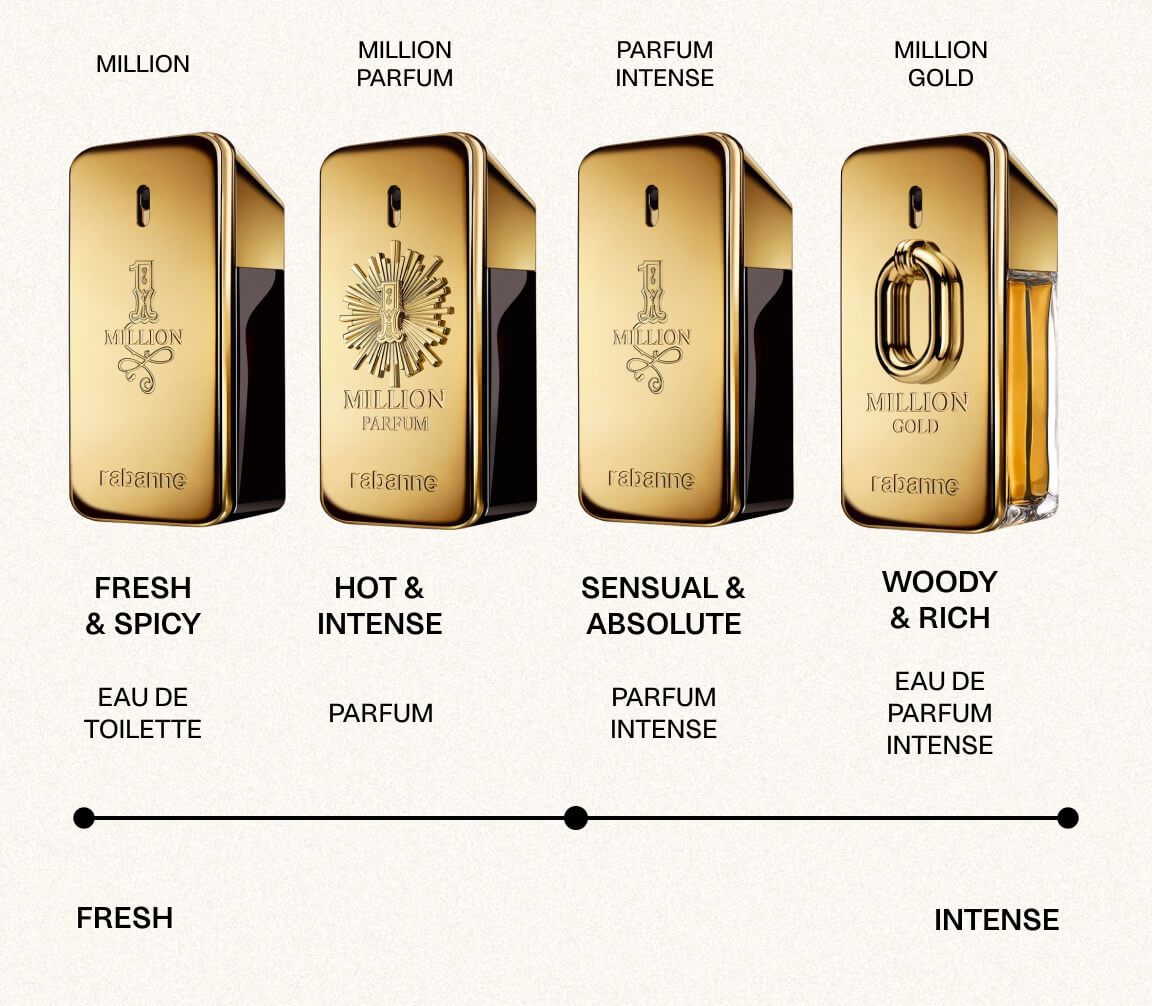 Suosionsa ansiosta One Million on kasvanut kokonaiseksi tuoksukokoelmaksi. Seuraavaksi esittelemme eri tulkinnat, jotta löydät helposti oikean vaihtoehdon.
