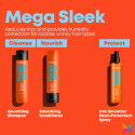 Mega Sleek Iron Smoother -suoristussuihke auttaa suojaamaan hiuksia korkean lämmön aiheuttamilta vaurioilta ja kosteudelta, hillitsee pörröisyyttä ja pitää hiukset sileinä koko päivän.