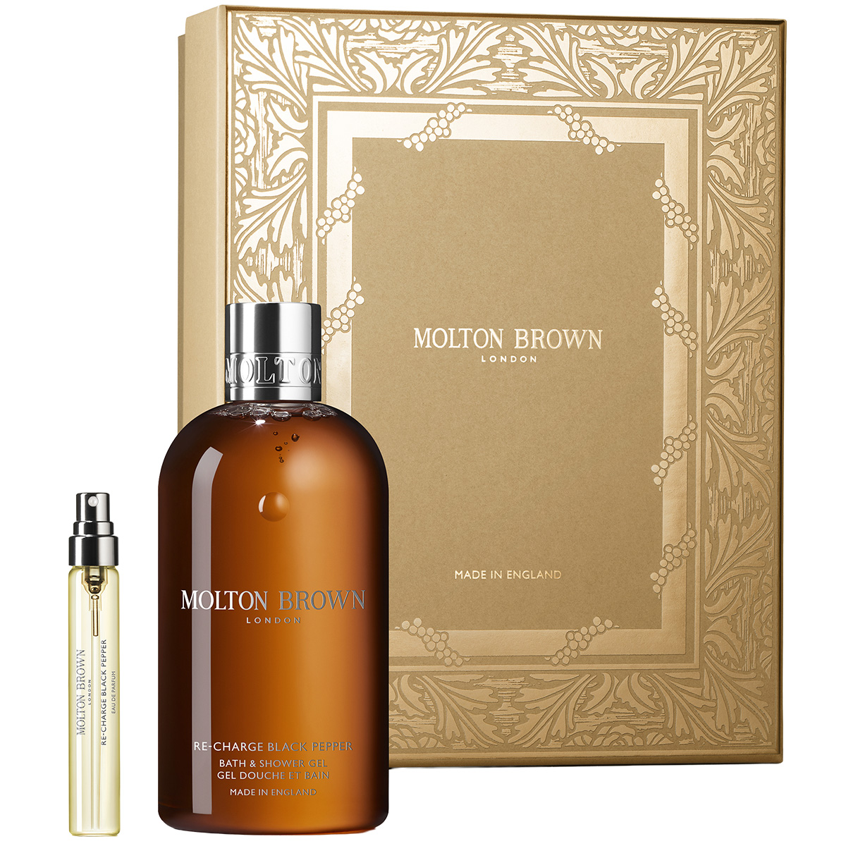 Re-charge Black Pepper Collection by Molton Brown on suunniteltu tyylitietoiselle matkailijalle – tai lahjaksi henkilölle, joka arvostaa ajatonta tuoksua. Setti sisältää matkakokoisen hajuveden ja täysikokoisen suihkugeelin, molemmat ikonisen Re-charge Black Pepper -tuoksun sävyttäminä. Lämpimät, puuvivahteiset nuotit sopivat täydellisesti talven syviin sävyihin. Yhdistelmä, joka raikastaa ja antaa itsevarmuutta – kotona tai liikkeellä.