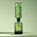 Paradigme-pullo on jo itsessään taideteos, joka herättää välittömästi uteliaisuuden. Sen arkkitehtoninen siluetti on radikaalin eleganssin ja avantgarden julistus, jota korostaa huolellisesti ja vinosti aseteltu Pradan ikoninen kolmio. Pullo on viimeistelty intensiivisellä ja viettelevällä mustanvihreällä lakalla – talon erehtymättömällä, ikonisella sävyllä. Ulkopakkaus on kohokuvioitu heijastamaan tuotemerkin Saffiano-nahkaa ristikkäiskuvioinnilla, ja se on signeerattu hopeanvärisellä Prada-logolla.