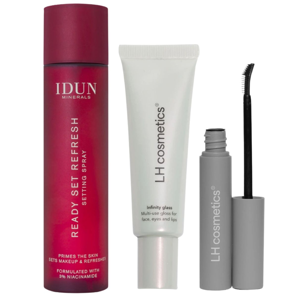 READY SET REFRESH. Monikäyttöinen ultrakevyt kasvosuihke, joka pohjustaa ihon, kiinnittää meikin ja kosteuttaa ihoa tuoden hehkuvan lopputuloksen. IDUN Minerals Ready Set Refresh Setting Spray -kasvosuihkeen kevyt koostumus parantaa meikin kestoa samalla kosteuttaen ja virkistäen ihoa. Sisältää glyserolia, joka lukitsee kosteuden ihoon sekä niasiiniamidia (3 %), joka vahvistaa ihon luonnollista suojakerrosta, lisää elastisuutta sekä parantaa ihon ulkonäköä. Tämä monikäyttöinen tuote pitää ihosi tasapainossa. Suihketta voi käyttää kosteuttavana meikinpohjustajana, eri meikkivaiheiden välissä sekä ihoa tasoittavana meikinkiinnityssuihkeena vähentämään puuterin aiheuttamaa kuivuutta ja kiinnittämään meikin tehokkaasti. Kätevä 100 ml pakkaus on helppo ottaa mukaan, joten miksi et hankkisi useamman suihkeen - yhden kylpyhuoneeseen, yhden laukkuun ja yhden töihin, jotta ihosi pysyy kosteutettuna ja ihanan tuntuisena koko päivän.