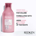 Redkenin Volume Injection hoitoaine on kevyt, volyymia antava hoitoaine, joka sisältää Redkenin Bodifying Complex -ainesosayhdistelmän, jossa on Filloxanea. Se auttaa kohottamaan tyveä välittömästi sekä antamaan tuuheutta hennoille, lättänöille tai käsitellyille hiuksille. Volume Injection kohottaa tyveä ja luo volyymia samalla, kun se tekee hiuksista kiiltävät ja pehmeät.