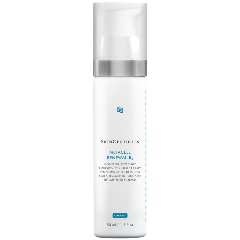 Kevyt, päivittäiseen käyttöön sopiva korjaava kosteusvoide, Metacell Renewal B3, sisältää niasiiniamidia, tripeptidikompleksin ja glyseriiniä, jotka edistävät solujen uudistumista, auttavat vahvistamaa ihon suojakerrosta ja häivyttävät juonteita, ryppyjä ja ihon epätasaisuutta sekä kiinteyttävät ihoa. Patentoidun emulsiokoostumuksensa ansiosta se kosteuttaa intensiivisesti ja helpottaa aktiivisten ainesosien imeytymistä jättämättä iholle raskasta tai tahmeaa tunnetta.