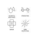 Naamio hoitaa intensiivisesti vaurioituneita hiuksia ja suojaa hiuskuituja. Aktiivinen kompleksi vähentää hiustenlähtöön liittyvää riskiä, tekee niistä vahvemmat ja korjaa hiuksia syvältä jo yhdellä käyttökerralla. Lisäksi se tekee vaurioituneista hiuksista sileämmät ja helpommat käsitellä, jotta mekaaniset lisävauriot voidaan estää.