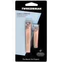 Tweezerman Combo Clipper Set on kynsileikkuriduo sekä sormien että varpaiden kynsille. Sormenkynsien leikkurin taivutetut terät seuraavat kynsien luonnollista muotoa. Varpaankynsileikkurin suorat terät ehkäisevät katkeilua ja varpaankynsien sisäänkasvamista. Kynsileikkurit on valmistettu ruostumattomasta teräksestä, joka on kestävää ja helppo puhdistaa. Vegaaninen.