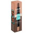 Loistava pari kasvojen muotoiluun! Suosittu NYX Professional Makeup Wonder Stick kaksipäinen korostuspuikko on tehnyt paluun entistä parempana! Vaalealla sävyllä saat ihollesi auringon suutelemaa hehkua, ja tummemmalla sävyllä voit korostaa ja muotoilla kasvonpiirteitäsi. Muotoile, valaise ja häivytä runsaspigmenttisillä sävy-yhdistelmillä! Aloita levittämällä tummempaa sävyä antamaan muotoa kasvoillesi ja levitä sitten vaaleampaa sävyä valaisemaan ja korostamaan. Häivytä huolellisesti: Upea lopputulos on valmis ! Vegaaninen koostumus* on ihanan voidemainen ja runsaspigmenttinen, joten se on helppo häivyttää kauniisti. Kerrostettavilla sävyillä voit helposti muokata lookiasi. Korostuspuikko vailla vertaa! Helppokäyttöinen puikko tarkkoihin korostuksiin ja contouring-meikkiin. Käytä yhdessä Wonder Stick -poskipunapuikon kanssa, joka antaa väriä kasvoille sekä Wonder Pencil -korostuskynän kanssa vielä tarkempaan muotoiluun.