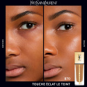 Yves Saint Laurent Touche Éclat Le Teint Foundation on Glow Liquid Foundation -meikkivoide, joka kosteuttaa, antaa keskitasoisen peittävyyden 24 tunniksi sekä miellyttävän, hengittävän tunnun iholle. YSL Touche Eclat Le Teint sisältää kehäkukka- ja salkoruusu-uutetta sekä E-vitamiinia. Koostumus antaa iholle optisesti virheettömän, hyvinvoivan ja luonnollisen hehkuvan ulkonäön ilman kompromisseja.